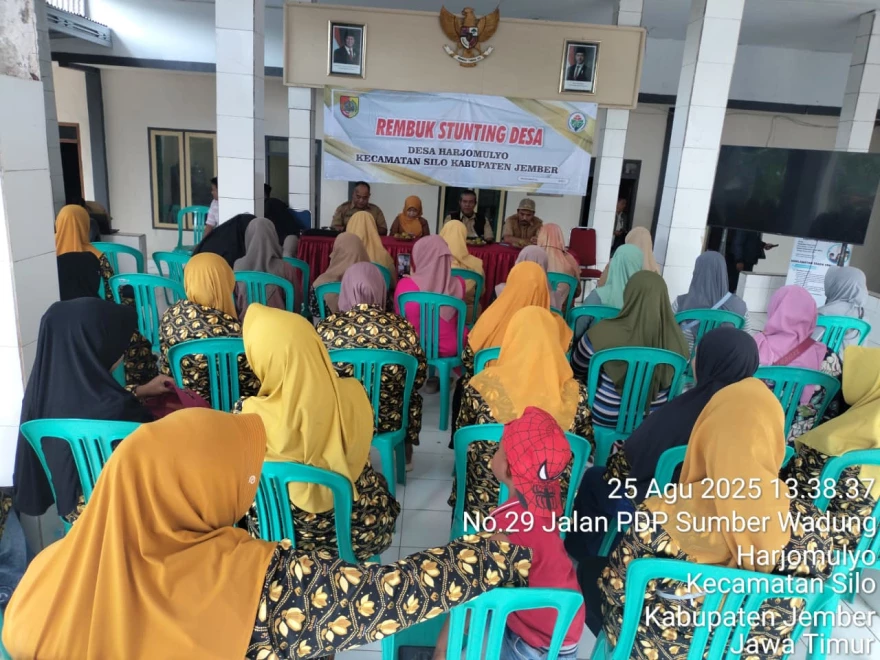 Dalam upaya menekan angka stunting dan meningkatkan kualitas kesehatan masyarakat, Pemerintah Desa Harjomulyo menggelar kegiatan Rembug Stunting pada hari Senin, 25 Agustus 2025 bertempat di Balai Desa Harjomulyo. Kegiatan ini merupakan forum strategis yang melibatkan lintas sektor untuk merumuskan langkah-langkah penanganan stunting di tingkat desa.